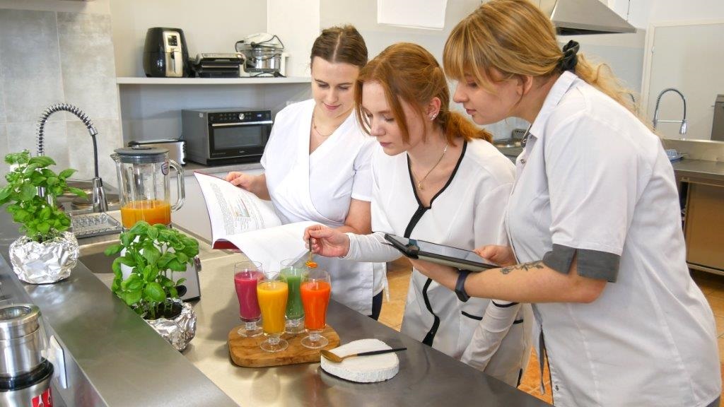 - pracownię technologii żywności, gdzie znajdują się stanowiska umożliwiające praktyczne sporządzanie zaplanowanych jadłospisów,