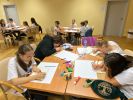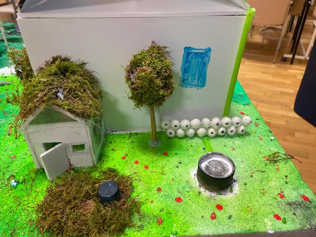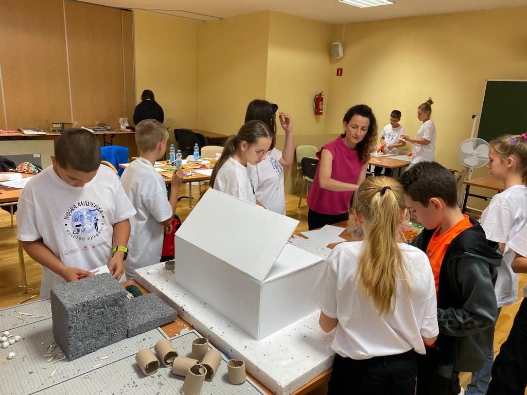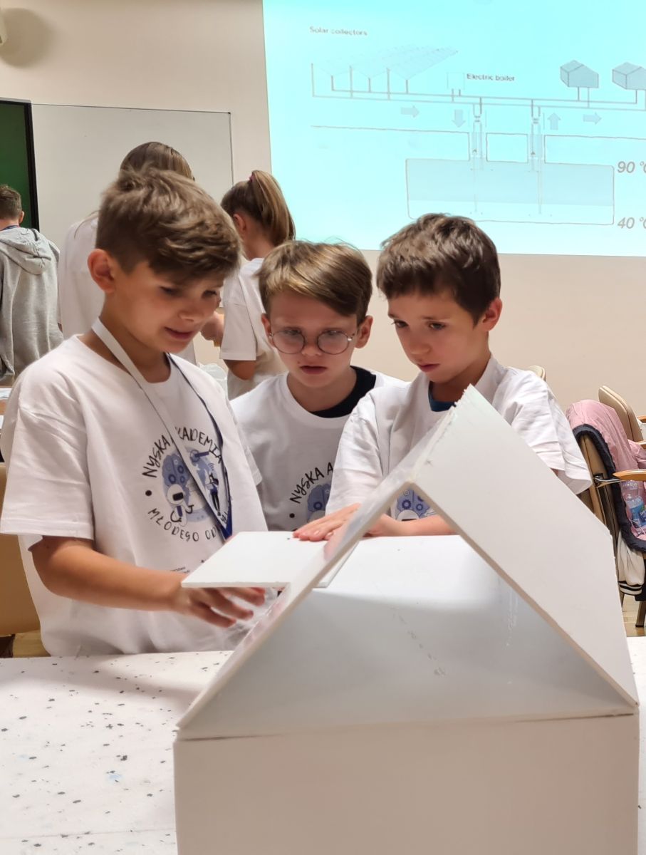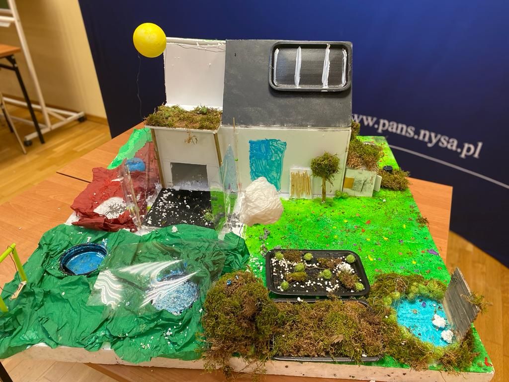 Celem przeprowadzonych warsztatów przez Panią mgr inż. arch. Ewę Matras było umożliwienie uczestnikom projektu poznanie podstawowych zagadnień związanych z problematyką ekologii i energooszczędności w architekturze. Uczestnicy zostali podzieleni na grupy tematyczne i mieli za zadanie opracowanie przydzielonych im tematów w zakresie ekologii (grupa 1- wykorzystanie materiałów naturalnych; grupa 2- pozyskiwanie wody deszczowej do celów gospodarczych, grupa 3- biotyczne przegrody w budownictwie) oraz w zakresie energooszczędności (grupa 1- orientacja budynku względem stron świata, grupa 2 -magazynowanie ciepła, grupa 3- ochrona budynku przed wiatrem). Efektem końcowym zajęć było stworzenie wspólnego modelu przestrzennego budynku, na którym uczestnicy prezentowali wymyślone przez nich rozwiązania dotyczące mieszkalnictwa ekologicznego i energooszczędnego.
