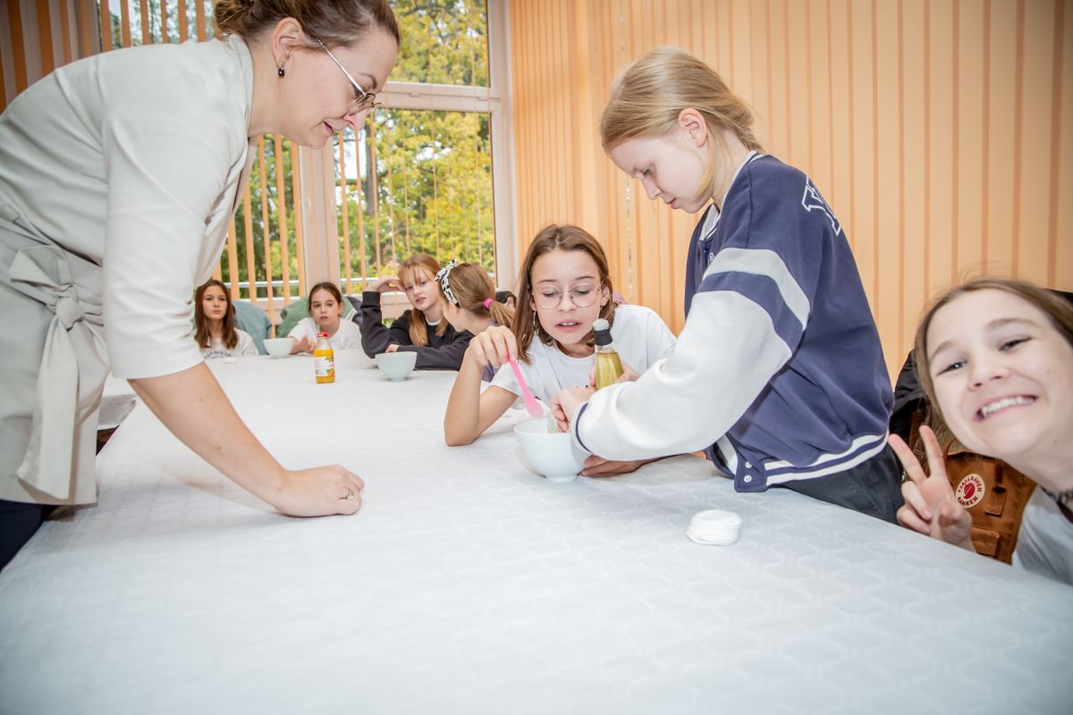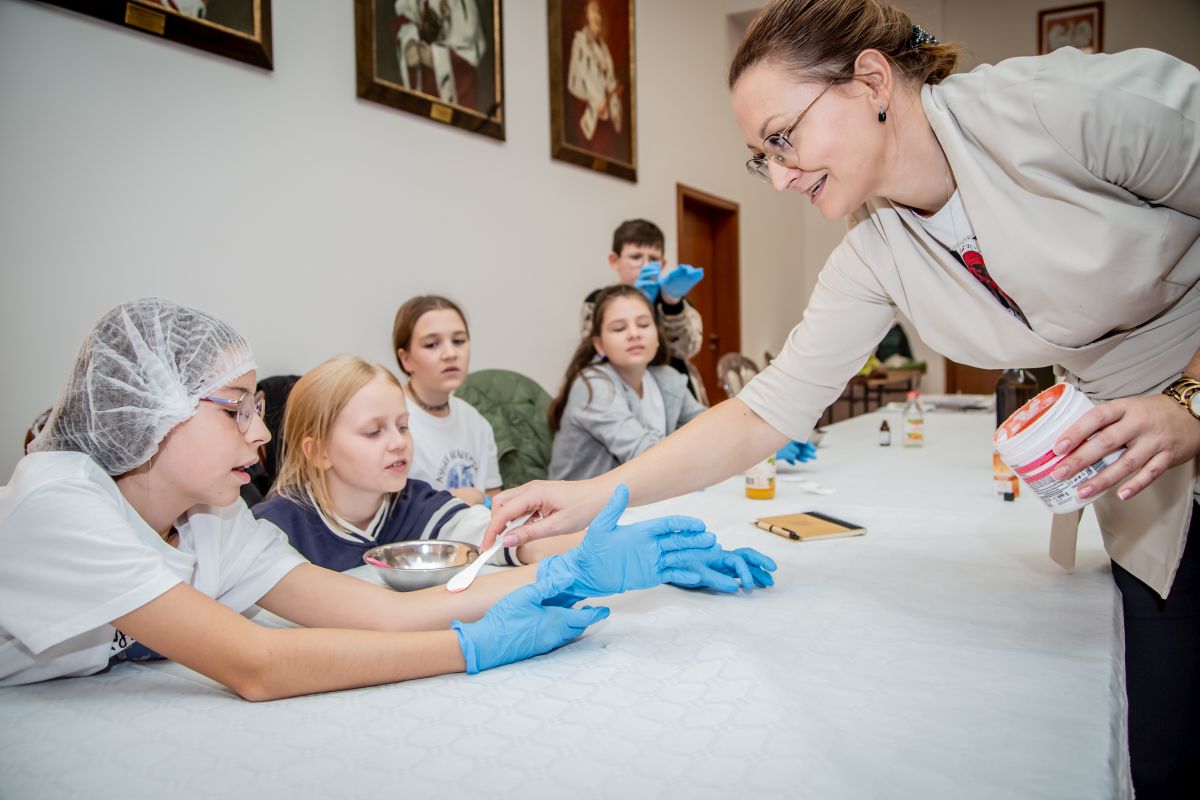 Kolejne zajęcia dla uczestników projektu „Nyska Akademia Młodych Odkrywców” koncentrowały się na pielęgnacji ciała i skóry, promując przy tym ekologiczne metody i produkty pielęgnacyjne, jakie są dostępne, jakie możemy stworzyć sami w domu, jak działają i dlaczego są korzystne dla naszego ciała i skóry. Uczestnicy projektu uczyli się korzystać z naturalnych składników (takich jak oleje, ektrakty roślinne, miód, itp.) i technik, aby właściwie dbać o swoje ciało, jednocześnie dbając o środowisko. Wśród poruszanych zagadnień pojawiły się także testy skórne i diagnostyka oraz certyfikacja i oznaczenie ekologicznych kosmetyków.