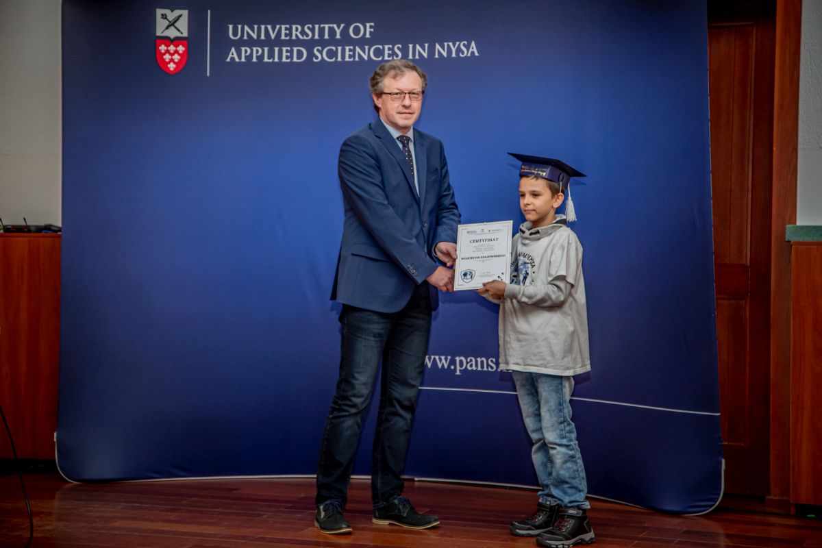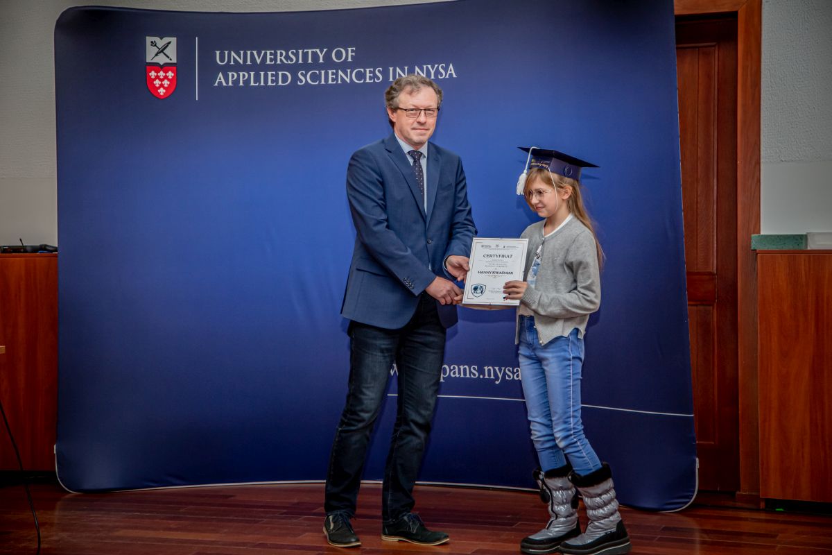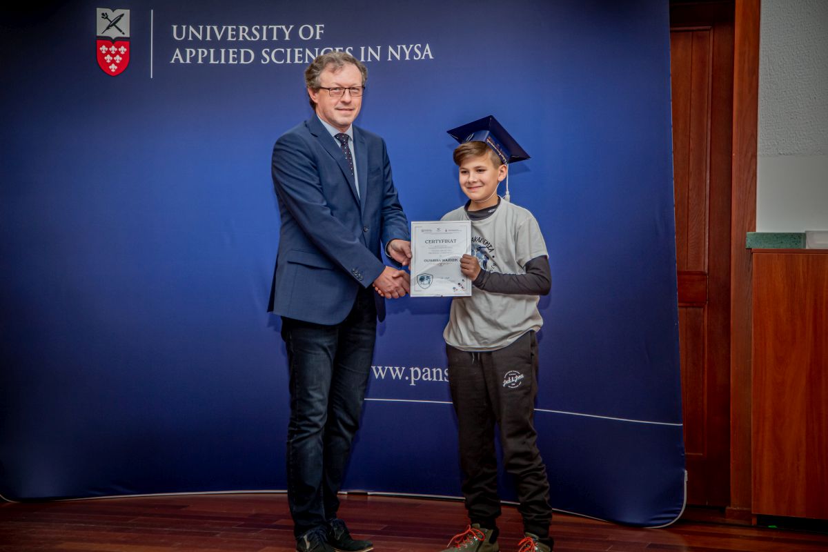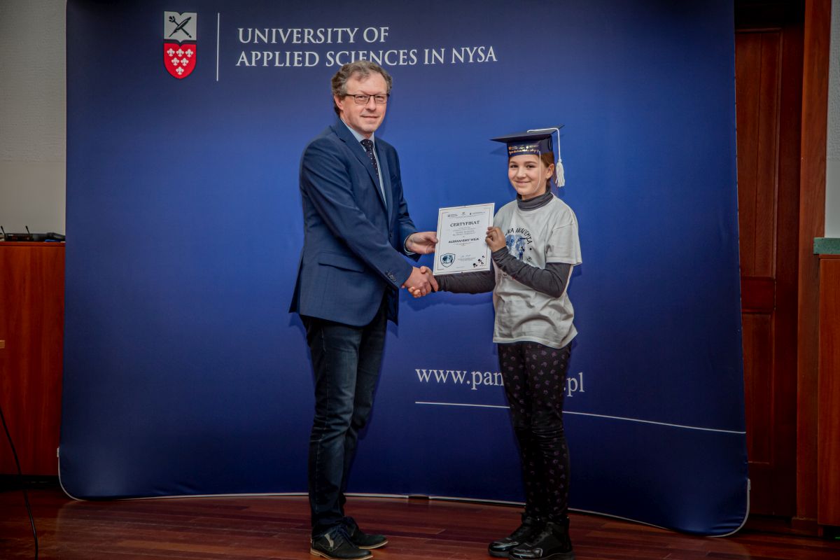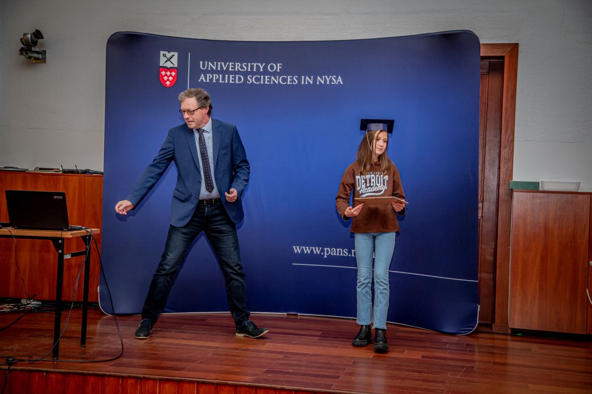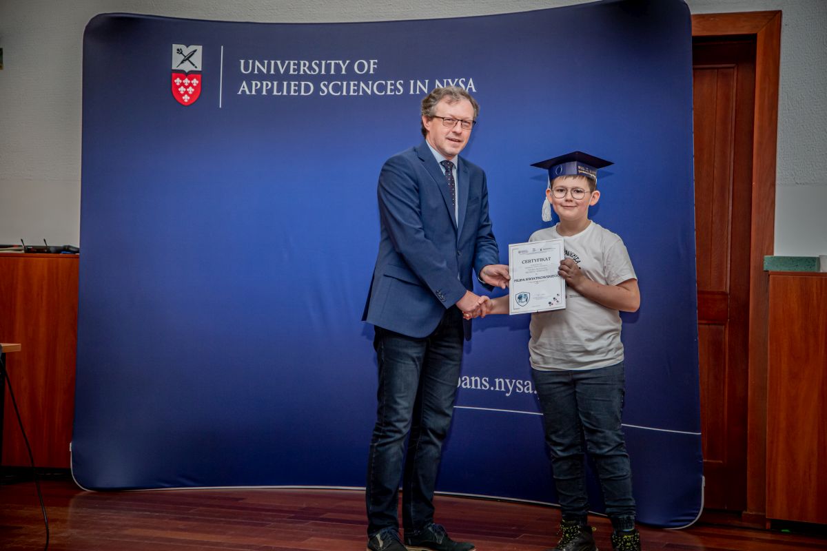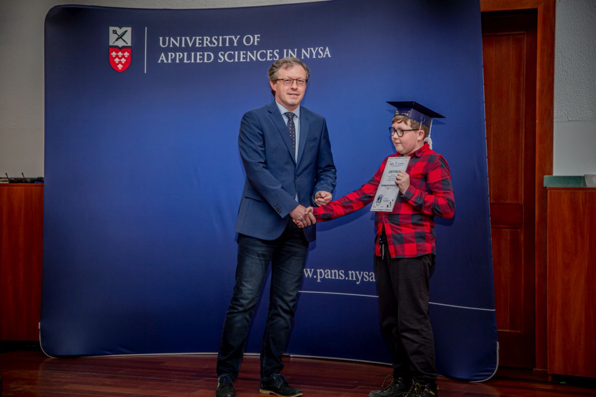 W dniu 16.12.2023 r. w Państwowej Akademii Nauk Stosowanych w Nysie odbyło się uroczyste zakończenie pierwszej edycji projektu “NYSKA AKADEMIA MŁODEGO ODKRYWCY”. Podczas ostatniego już spotkania dokonano podsumowania zrealizowanych zajęć, a wszyscy uczestnicy otrzymali birety i certyfikaty udziału w projekcie.