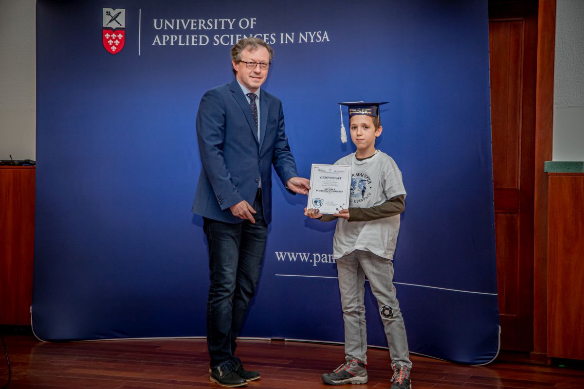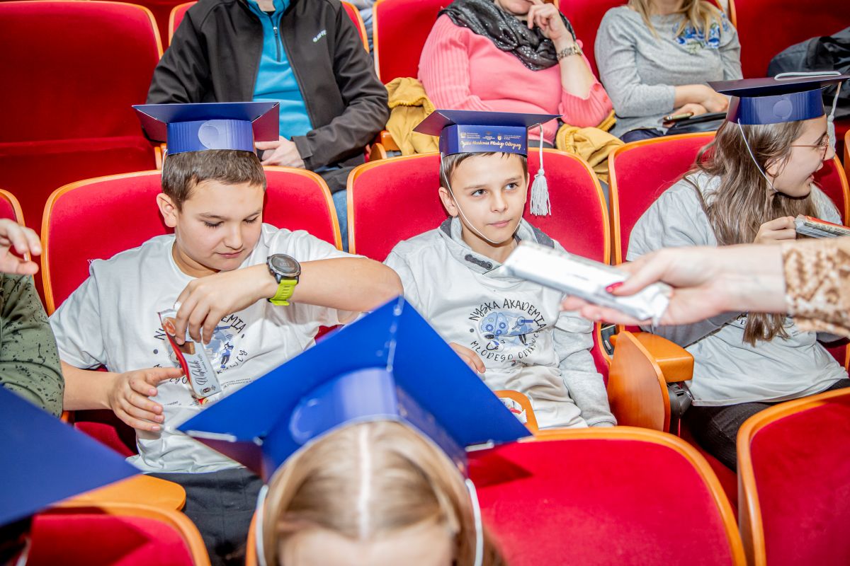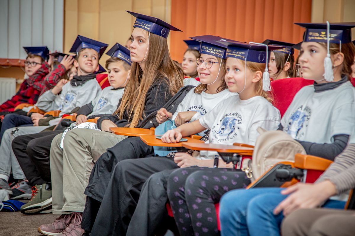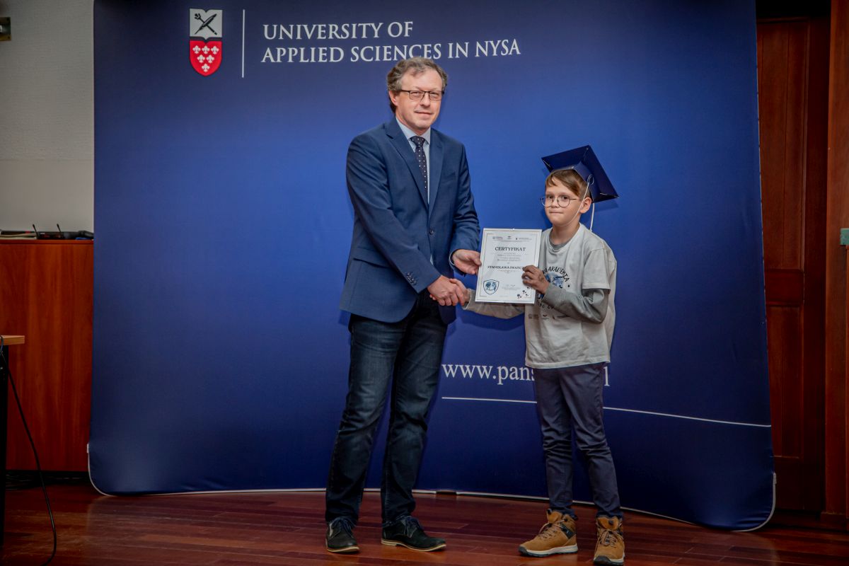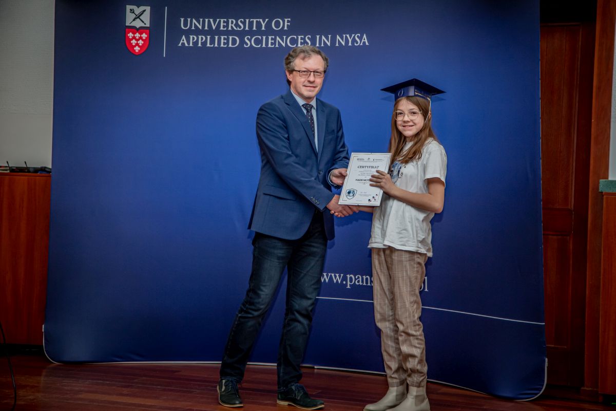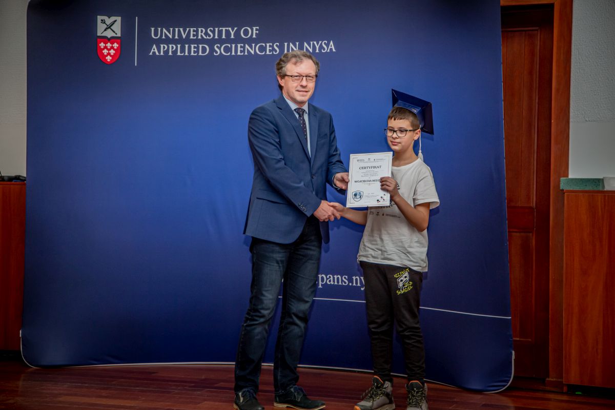 W dniu 16.12.2023 r. w Państwowej Akademii Nauk Stosowanych w Nysie odbyło się uroczyste zakończenie pierwszej edycji projektu “NYSKA AKADEMIA MŁODEGO ODKRYWCY”. Podczas ostatniego już spotkania dokonano podsumowania zrealizowanych zajęć, a wszyscy uczestnicy otrzymali birety i certyfikaty udziału w projekcie.