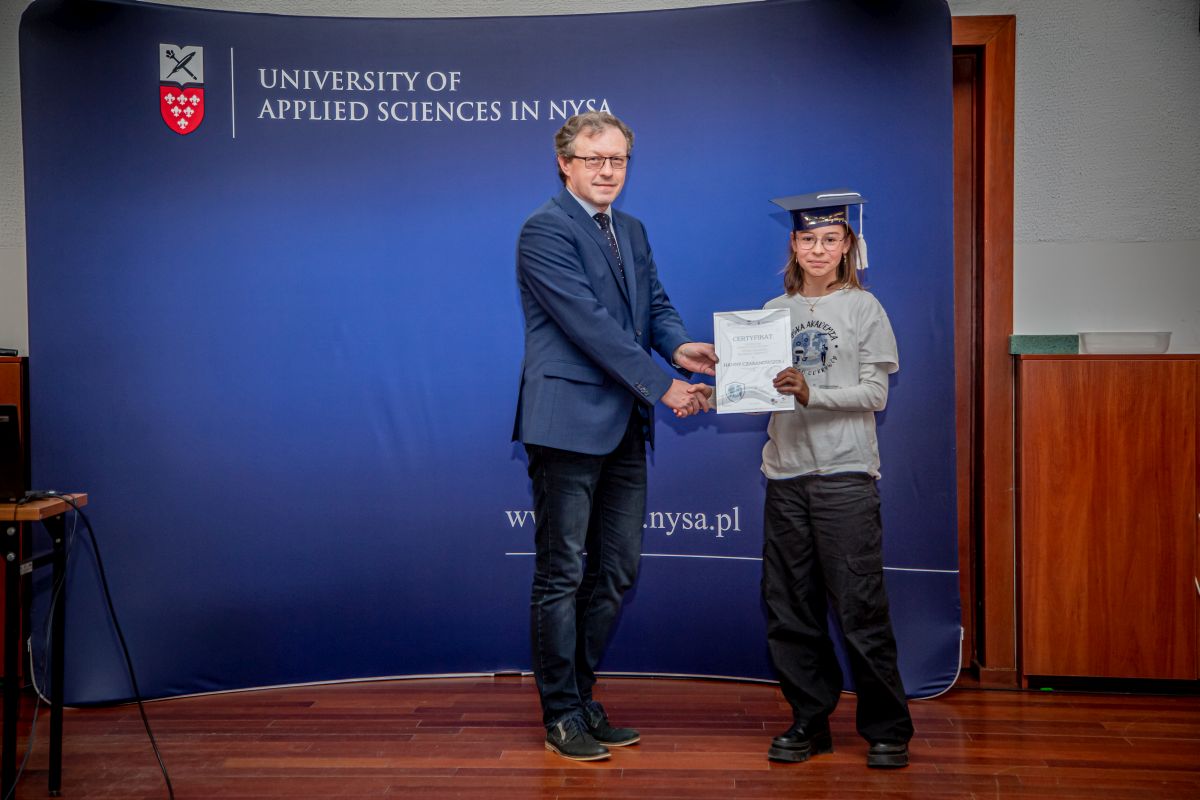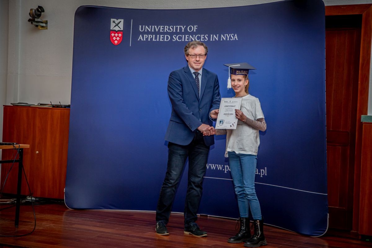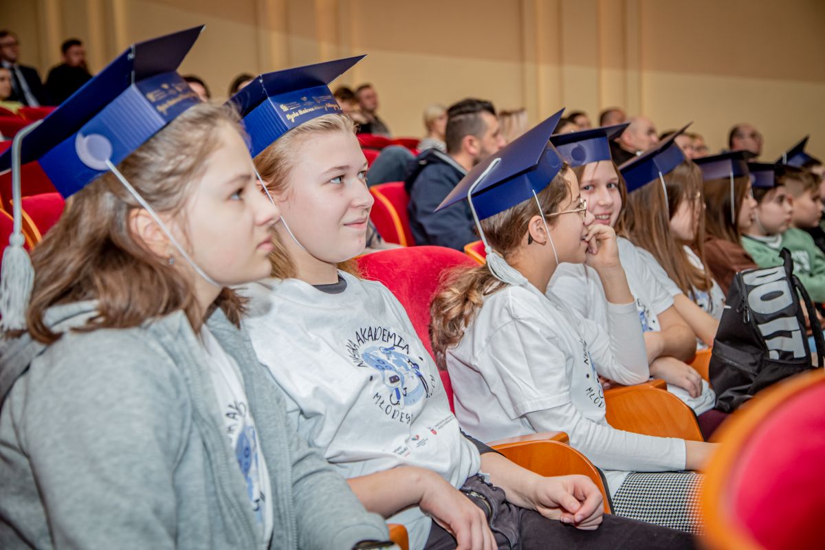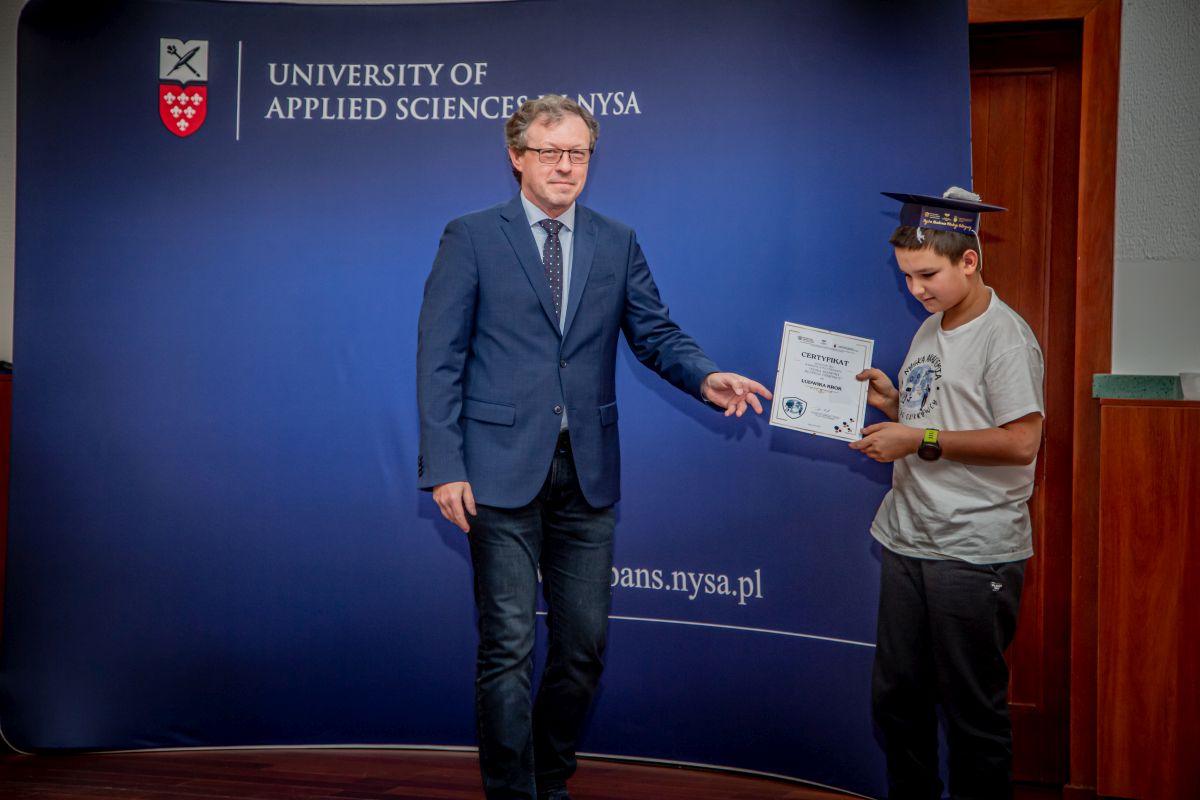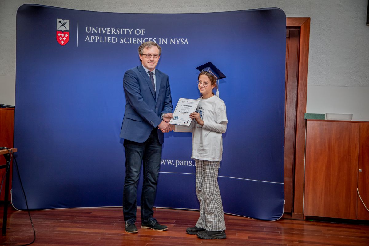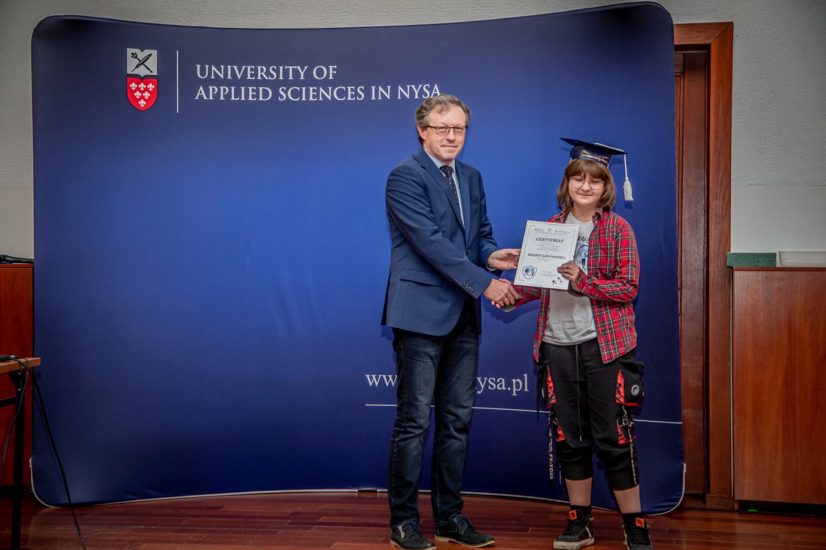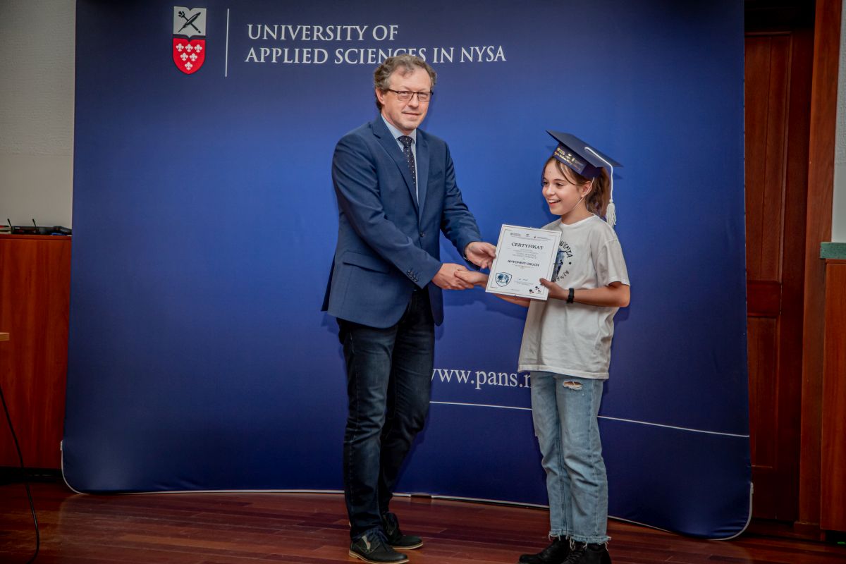 W dniu 16.12.2023 r. w Państwowej Akademii Nauk Stosowanych w Nysie odbyło się uroczyste zakończenie pierwszej edycji projektu “NYSKA AKADEMIA MŁODEGO ODKRYWCY”. Podczas ostatniego już spotkania dokonano podsumowania zrealizowanych zajęć, a wszyscy uczestnicy otrzymali birety i certyfikaty udziału w projekcie.