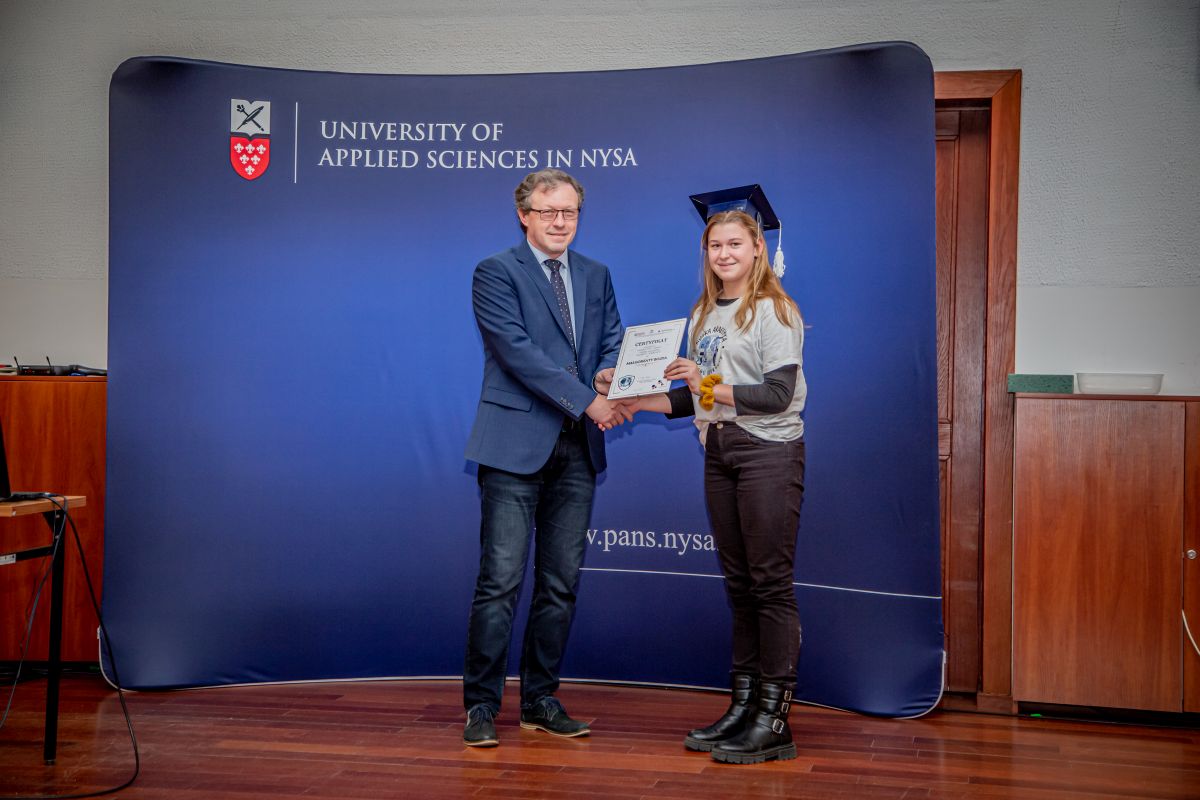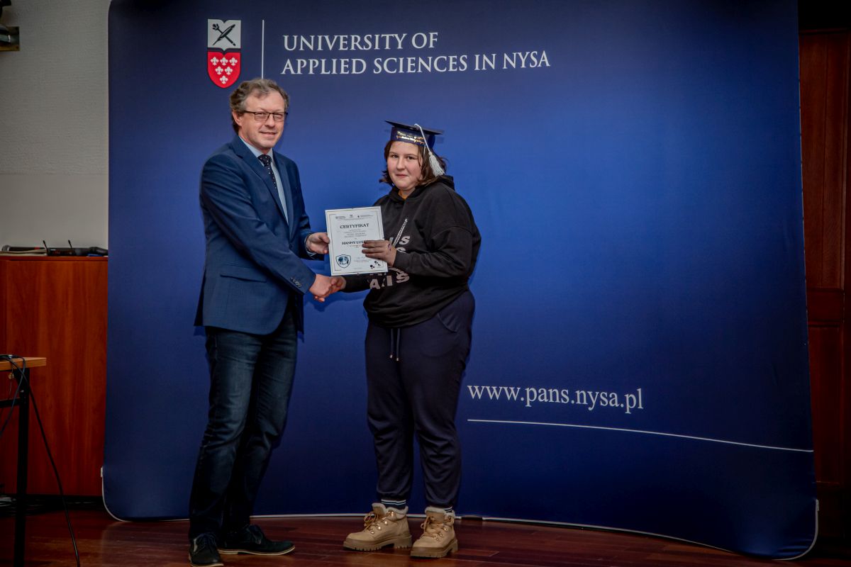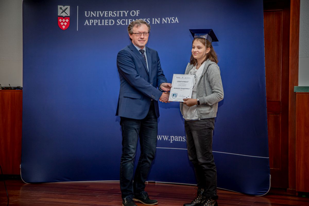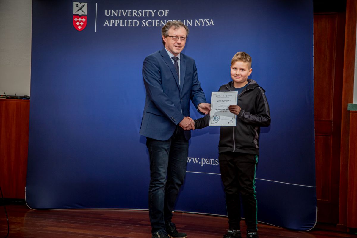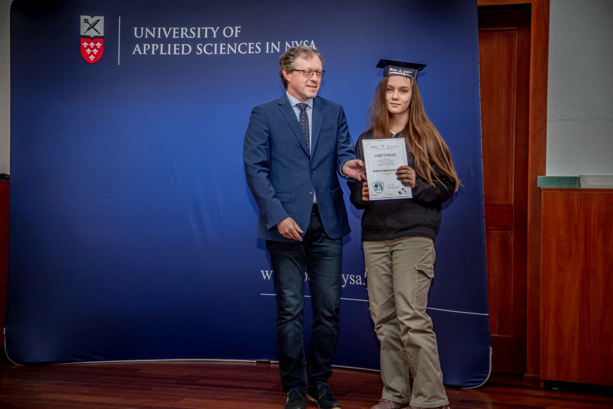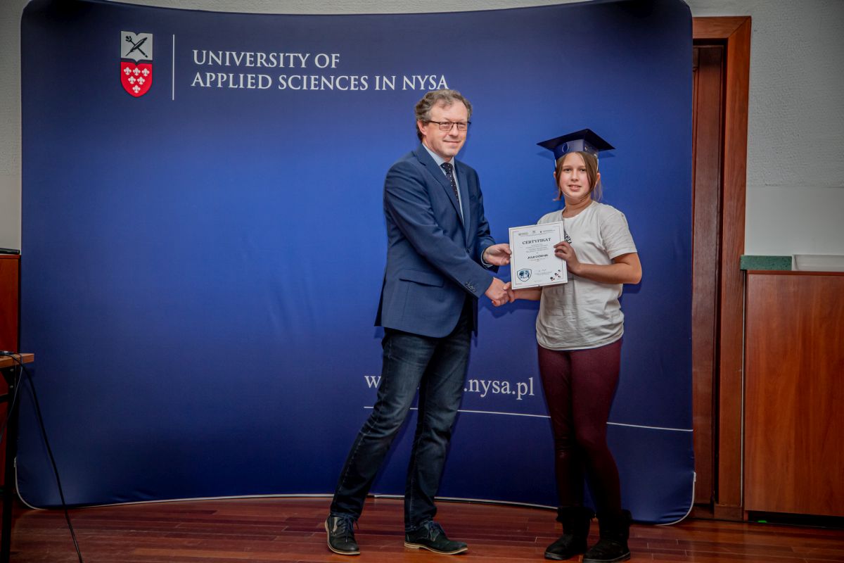 W dniu 16.12.2023 r. w Państwowej Akademii Nauk Stosowanych w Nysie odbyło się uroczyste zakończenie pierwszej edycji projektu “NYSKA AKADEMIA MŁODEGO ODKRYWCY”. Podczas ostatniego już spotkania dokonano podsumowania zrealizowanych zajęć, a wszyscy uczestnicy otrzymali birety i certyfikaty udziału w projekcie.