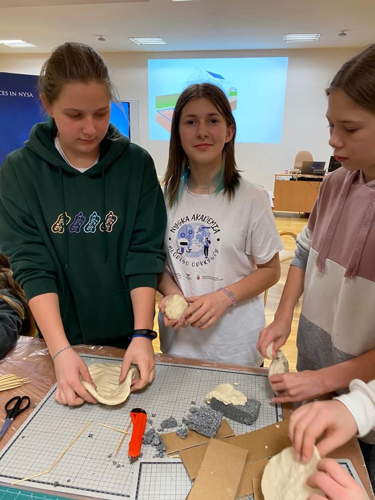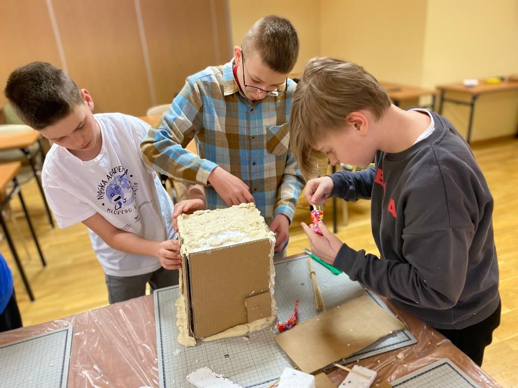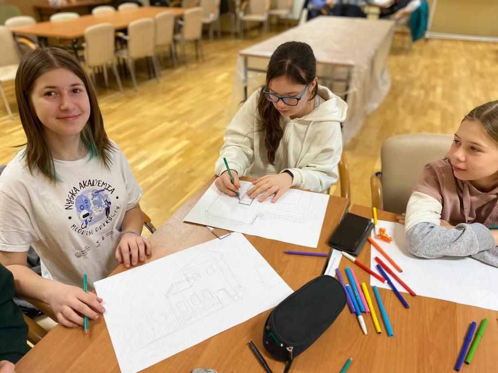 W sobotę 17.02.2024 uczniowie z klas VII – VIII wzięli udział z zajęciach z Architektury pod nazwą „Jak budować i mieszkać ekologicznie i energooszczędnie”. Celem przeprowadzonych warsztatów przez Panią mgr inż. arch. Ewę Matras było umożliwienie uczestnikom projektu poznanie podstawowych zagadnień związanych z problematyką ekologii i energooszczędności w architekturze. Uczestnicy zostali podzieleni na grupy tematyczne i mieli za zadanie opracowanie przydzielonych im tematów w zakresie ekologii, tj. wykorzystanie materiałów naturalnych; pozyskiwanie wody deszczowej do celów gospodarczych, biotyczne przegrody w budownictwie oraz w zakresie energooszczędności. Dodatkowo młodzież tworzyła modele przestrzenne budynków z masy solnej, na którym uczestnicy prezentowali wymyślone przez nich rozwiązania dotyczące mieszkalnictwa ekologicznego i energooszczędnego. Na zakończenie zajęć uczestnicy poznali zasady modelowania 3D w AutoCAD i stworzyli komputerowo własne trójwymiarowe bryły i budynki mieszkalne.