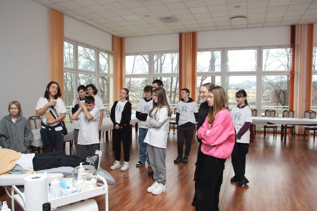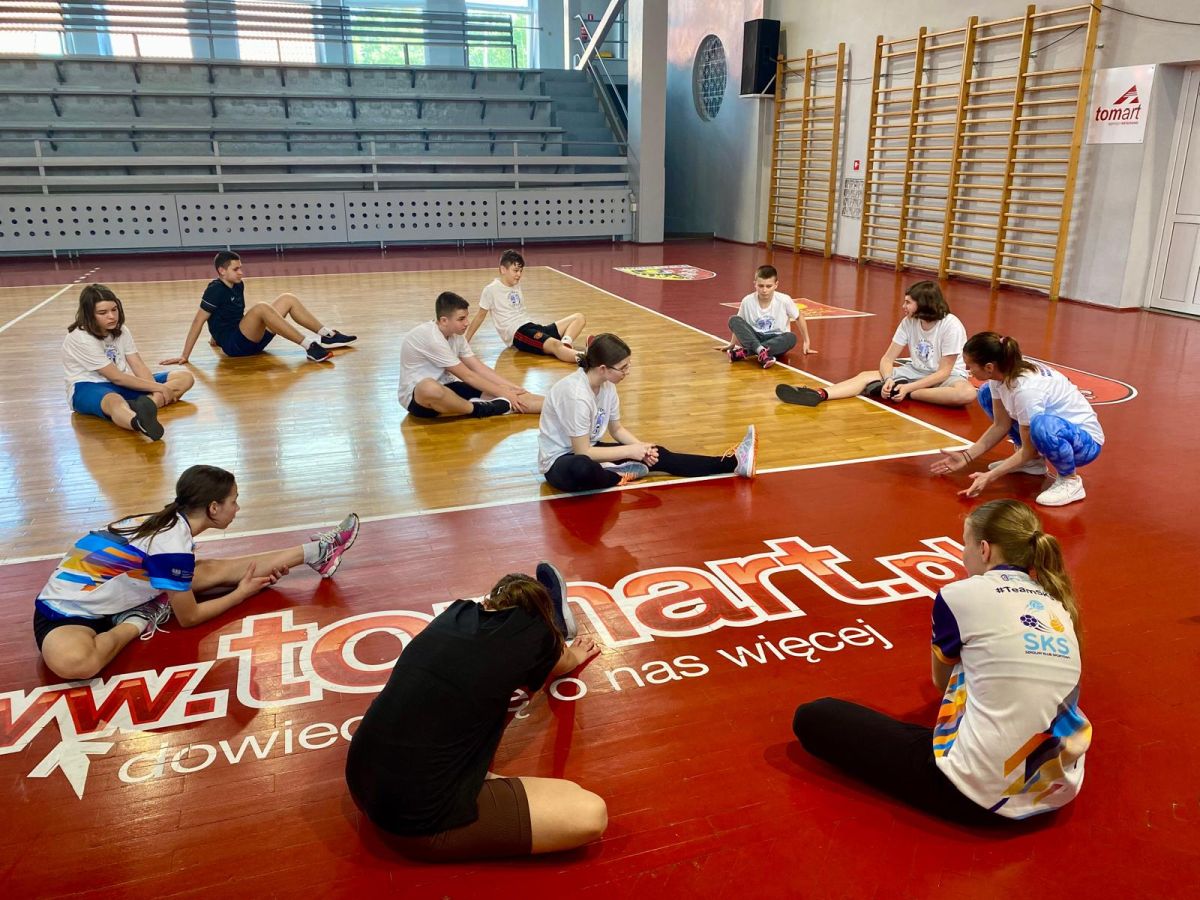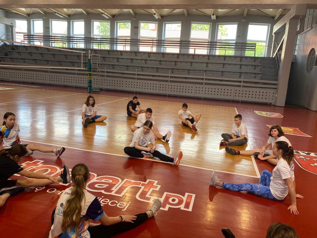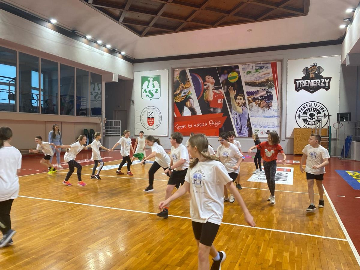 Również w sobotę 17.02.2024 odbyły się zajęcia młodszej grupy uczestników projektu z klas V-VI poświęcone zdrowemu stylowi życia pod nazwą: „Zdrowie i kondycja fizyczna w zdrowym środowisku naturalnym”. Na warsztatach zostały omówione składowe stylu życia ze szczególnym uwzględnieniem aktywności fizycznej oraz technik relaksacyjnych. Wspomniano również o najczęściej popełnianych błędach w zachowaniu, które powodują wady postawy ciała. Młodzież miała dużą wiedzę na poruszane tematy podczas warsztatów, stąd też prowadząca dr n. o zdr. Ewa Szura skupiła się bardziej na motywacji do działania by faktycznie umieć korzystać z posiadanej już wiedzy. Porozmawiano o tym co stanowi problem w dbaniu o zdrowie. Poruszono temat słodyczy, lenistwa w podejmowaniu aktywności fizycznej, postawy ciała, higieny snu i wiele innych zagadnień, w tym również trening uważności. Warsztaty zostały urozmaicone grami i zabawami ruchowymi mające na celu większą integrację grupy projektowej.