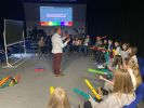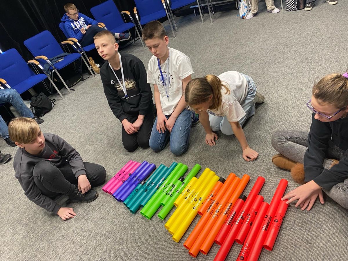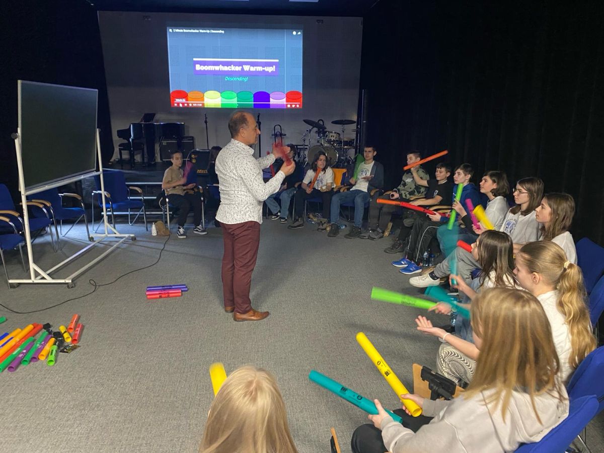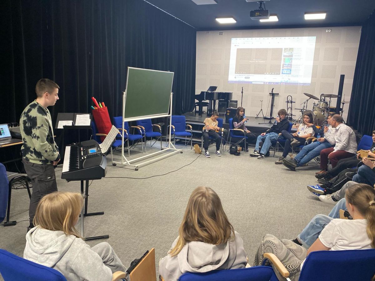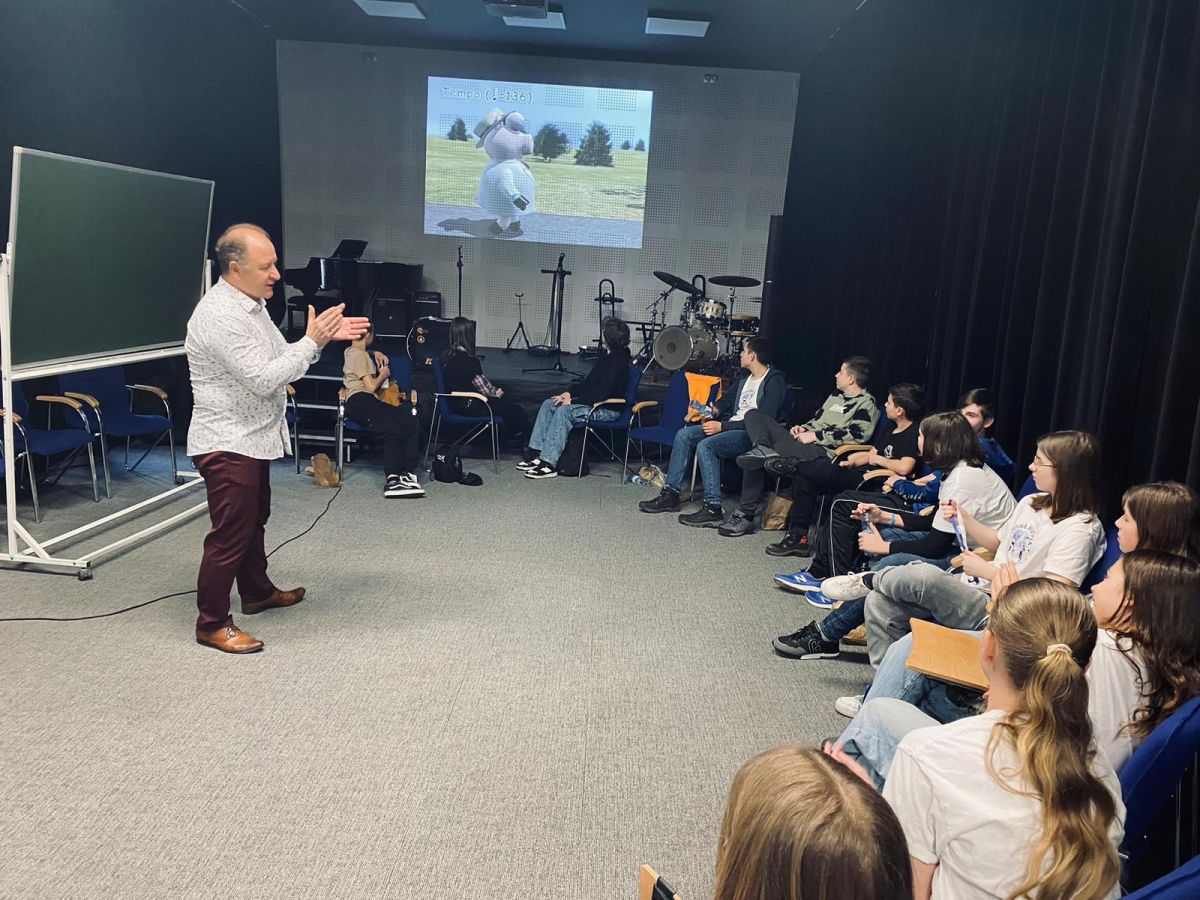 Również w sobotę 09.03.2024 starsza grupa uczestników z projektu "NAMO" brała udział w zajęciach tematycznych pod nazwą „Wpływ dźwięków i muzyki na rozwój fizyczny i emocjonalny człowieka”, które zostały poprowadzone przez Pana dr Mariusza Drożdżala. Warsztaty miały na celu między innymi rozbudzenie u dzieci zamiłowania do muzyki, umiejętności słuchania prostych utworów muzycznych, a także rozwijania dyspozycji muzycznych oraz kształtowanie wrażliwości muzycznej. Była to aktywna forma obcowania z muzyką poprzez ruch, improwizację, która wprowadzi uczestników w barwny świat dźwięków wyzwalając tym samym pozytywne emocje i wyobraźnię. Uczestnicy projektu dowiedzieli się jak kształtować umiejętność poprawnego oddechu, czym jest rytm i jaką rolę pełni w muzyce, a także o zastosowaniu dynamiki i kolorystyki brzmieniowej w celu osiągnięcia określonych efektów dźwiękowych.