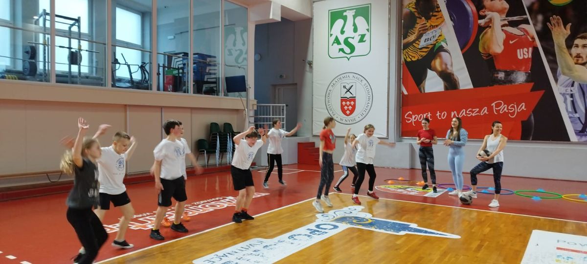 Dnia 13.04.2024 odbyły się zajęcia skierowane do starszej grupy uczestników projektu NAMO z klas VII-VIII poświęcone zdrowemu stylowi życia. Warsztaty sportowe pod nazwą: „Zdrowie i kondycja fizyczna w zdrowym środowisku naturalnym” poprowadziła Pani dr n. o zdr. Ewa Szura. Na warsztatach zostały omówione składowe stylu życia ze szczególnym uwzględnieniem aktywności fizycznej oraz właściwych technik relaksacyjnych i o treningu uważności. Wspomniano również o najczęściej popełnianych błędach w zachowaniu, o ważnej kwestii motywacji do działania, o składowych dobrego zdrowia tj. zarówno o dobrej kondycji fizycznej jak i psychicznej młodych ludzi. Warsztaty zostały urozmaicone grami sportowymi i zabawami ruchowymi mające na celu większą integrację grupy projektowej.