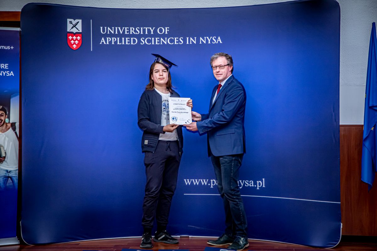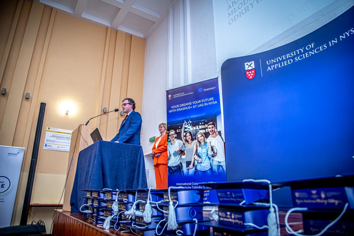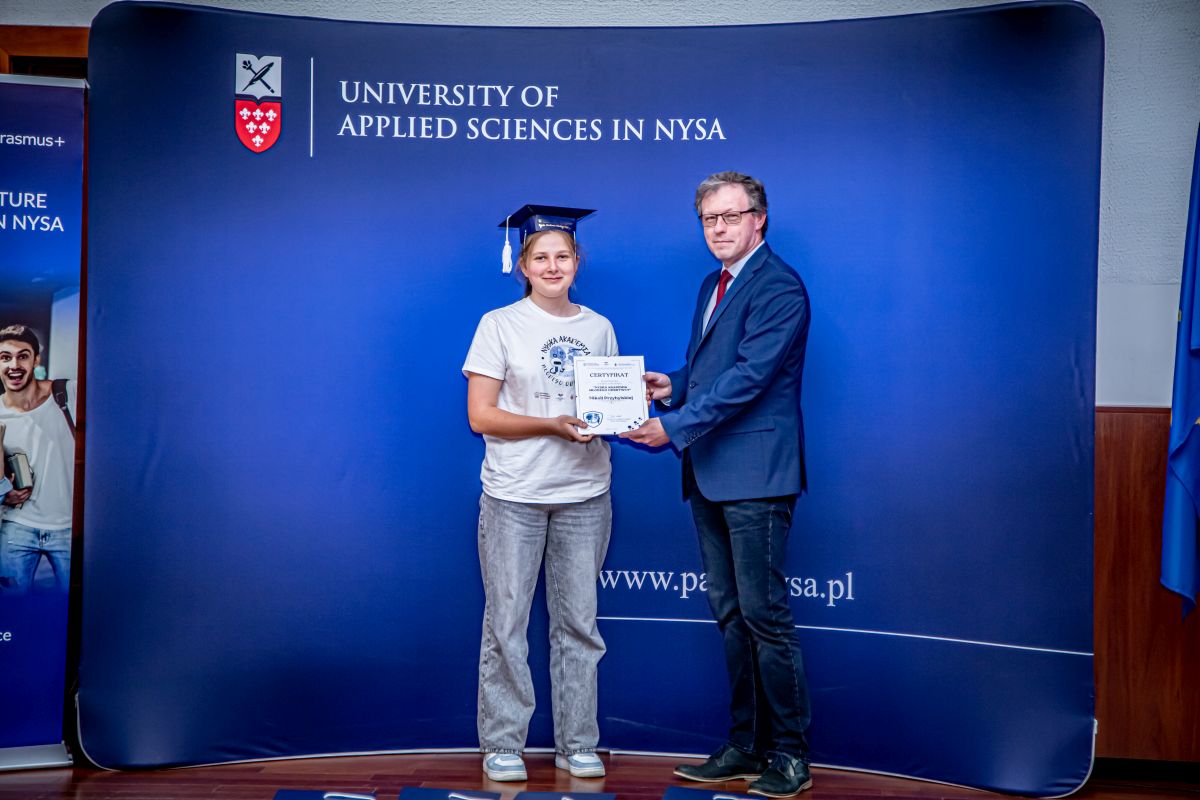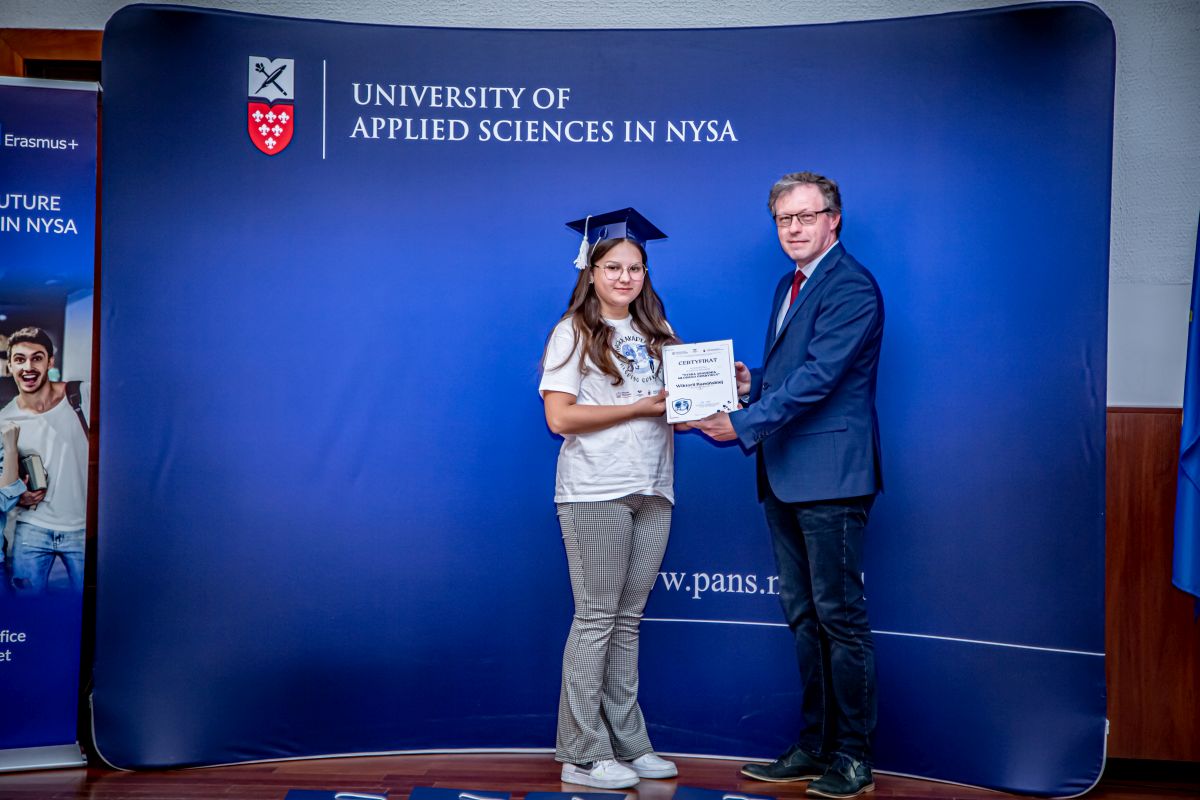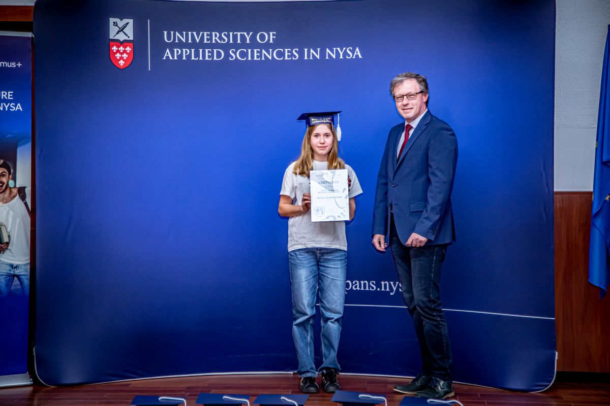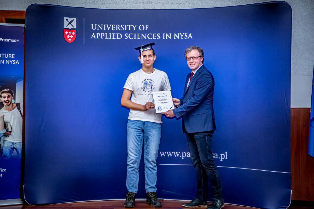 W dniu 20.04.2024 r. w Państwowej Akademii Nauk Stosowanych w Nysie odbyło się uroczyste zakończenie drugiej edycji projektu “NYSKA AKADEMIA MŁODEGO ODKRYWCY”. Podczas ostatniego już spotkania projektowego podsumowaliśmy trzy miesiące zrealizowanych zajęć, które były pełne naukowych odkryć i praktycznych doświadczeń. Wszyscy uczestnicy otrzymali birety i certyfikaty udziału w projekcie.
