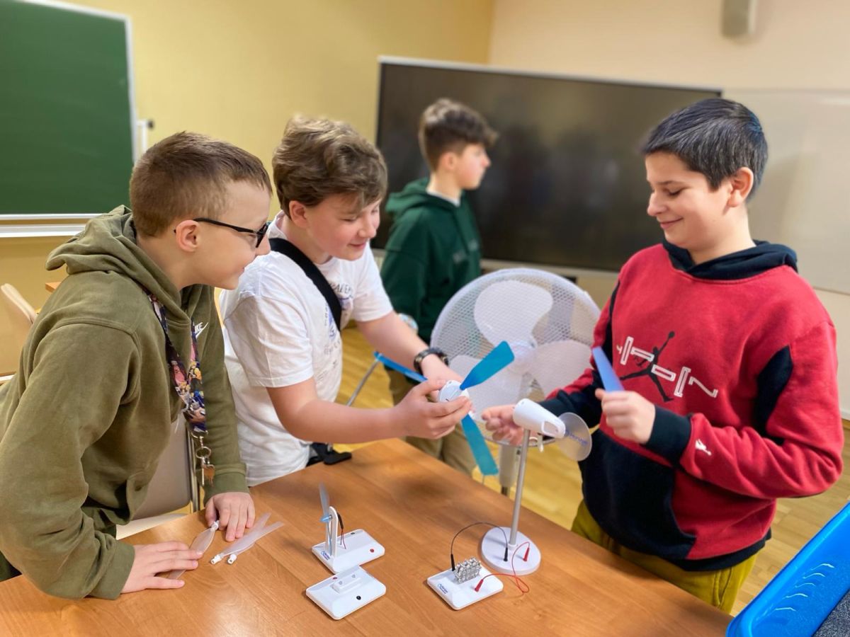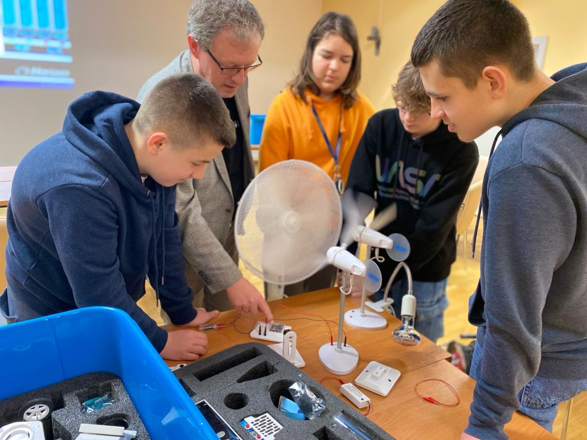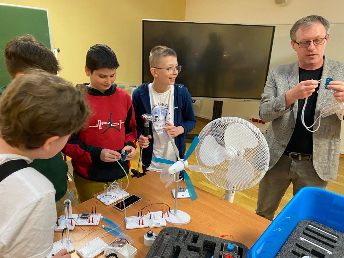 W sobotę 2.03.2024 w ramach projektu NAMO odbyły się zajęcia dla obu grup projektowych pod nazwą: „Jak wytworzyć zieloną energię i wykorzystać ją w rozwoju technicznym społeczeństwa?”. Tematykę zrównoważonego rozwoju przybliżył uczestnikom dr inż. Piotr Chwastyk - Prorektor ds. Współpracy i Rozwoju PANS w Nysie. Podjęta problematyka miała za cel przybliżyć uczestnikom projektu zagrożenia wynikające z nadmiernej eksploatacji zasobów naturalnych ziemi oraz konieczność znalezienia alternatywnych dróg rozwoju społecznego poprzez postęp techniczny bez naruszania naturalnych zasobów, co z kolei wpłynęło na pobudzenie świadomości i wyobraźni uczniów na temat przyszłości świata i ludzkości. Zajęcia warsztatowe zostały przeprowadzone przy użyciu zestawów doświadczalnych Horizon. Uczestnicy obu grup projektowych mieli okazję przeprowadzić wiele ciekawych eksperymentów demonstrujących zasadę działania odnawialnych źródeł energii i ogniw paliwowych, oraz sposób współpracy tych systemów. Oprócz zapoznania się z możliwościami wytwarzania energii elektrycznej z wiatru, promieni słonecznych lub przy pomocy korby, została także poruszona tematyka magazynowania energii i superkondensatorów. Dzięki różnym ogniwom paliwowym z zestawu Horizon, uczniowie mogli także porównać ich właściwości.
