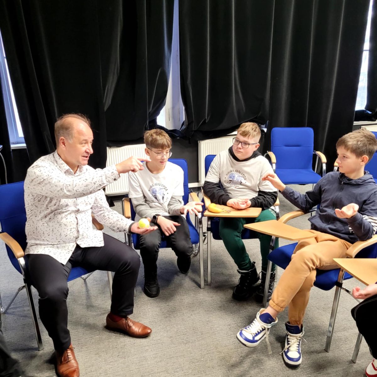 W ubiegłą sobotę, 7 grudnia 2024 roku, odbyły się wyjątkowe zajęcia w ramach projektu „Nyska Akademia Młodych Odkrywców”. Grupa uczestników miała okazję wziąć udział w warsztatach tematycznych pt. „Wpływ dźwięków i muzyki na rozwój fizyczny i emocjonalny człowieka”, prowadzonych przez Pana dr Mariusza Drożdżala.