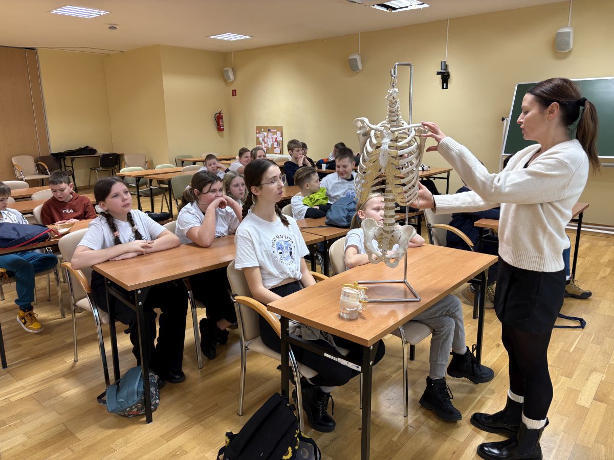 🧘♂️ Psychofizyczne kształtowanie człowieka z dr n. o zdr. Ewą Szurą – uczestnicy poznali znaczenie prawidłowej postawy ciała i dowiedzieli się, jakie skutki może mieć długotrwałe przyjmowanie nieprawidłowych pozycji. 📏👣 Omówiono wady postawy, takie jak zamknięta klatka piersiowa, okrągłe plecy i pozamykane biodra. Dodatkowo dzieci z ogromnym zaangażowaniem uczestniczyły w grach i zabawach słownych i ruchowych, co było świetnym połączeniem nauki i aktywności fizycznej! 🏀🤸♀️