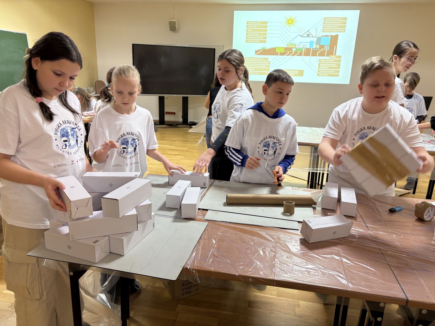 Młodzież została podzielona na grupy, a celem zajęć było zapoznanie uczestników z podstawowymi zagadnieniami z zakresu ekologii i energooszczędności w architekturze oraz zrównoważonego oszczędzania, które uwzględnia troskę o środowisko i społeczeństwo.