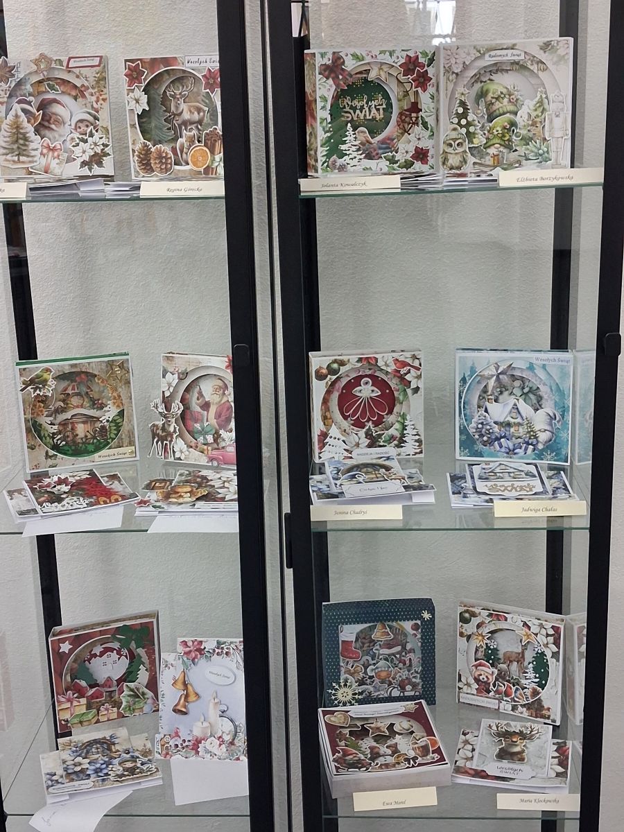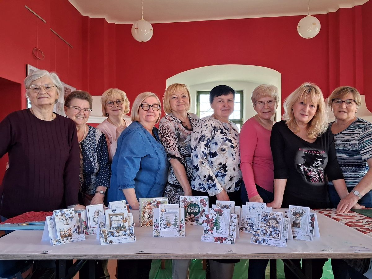Kończąc swoje wystąpienie p. Ewa Morel zaprosiła do oglądania prac, rozmowy z twórczyniami i słodkiego poczęstunku. Akcentem kończącym wernisaż było losowanie upominków własnoręcznie wykonanych i ofiarowanych przez uczestniczki warsztatów – radość szczęśliwców była ogromna.