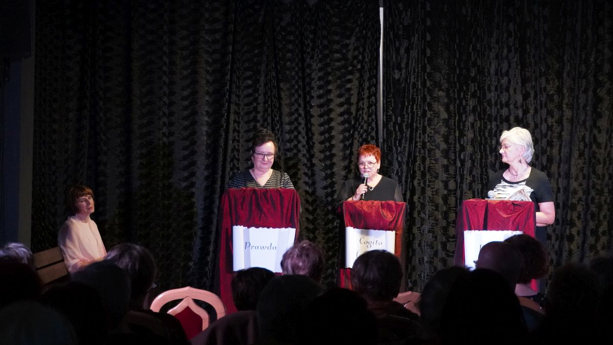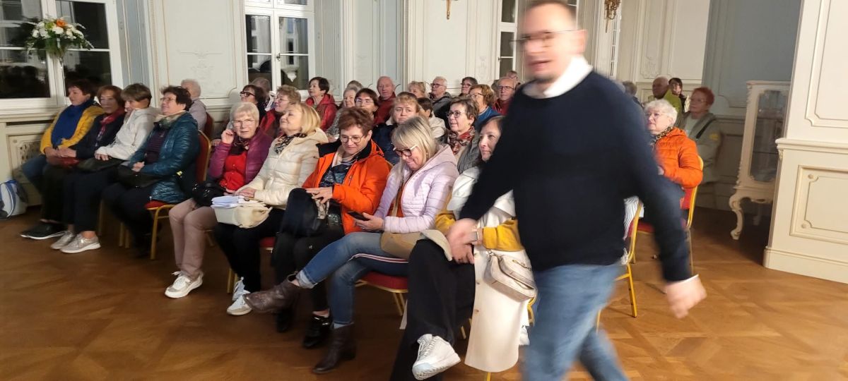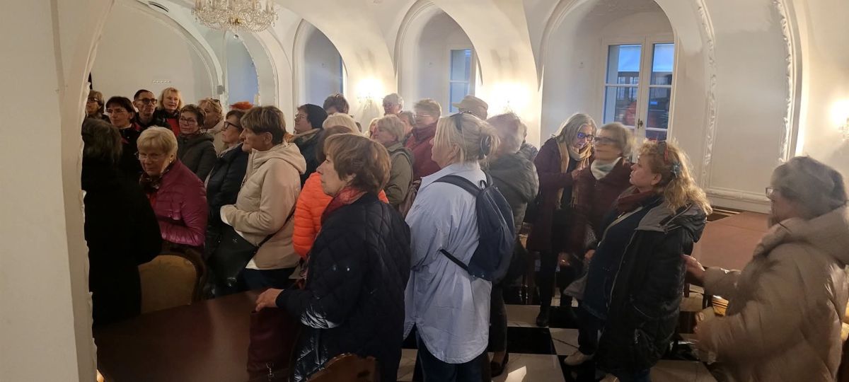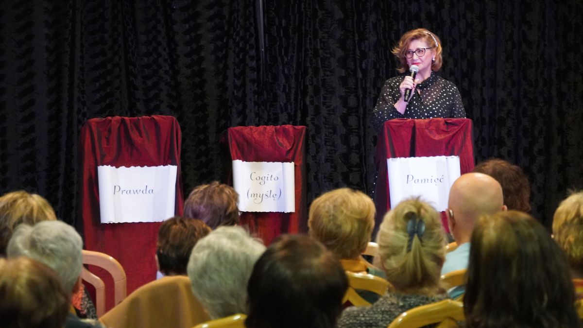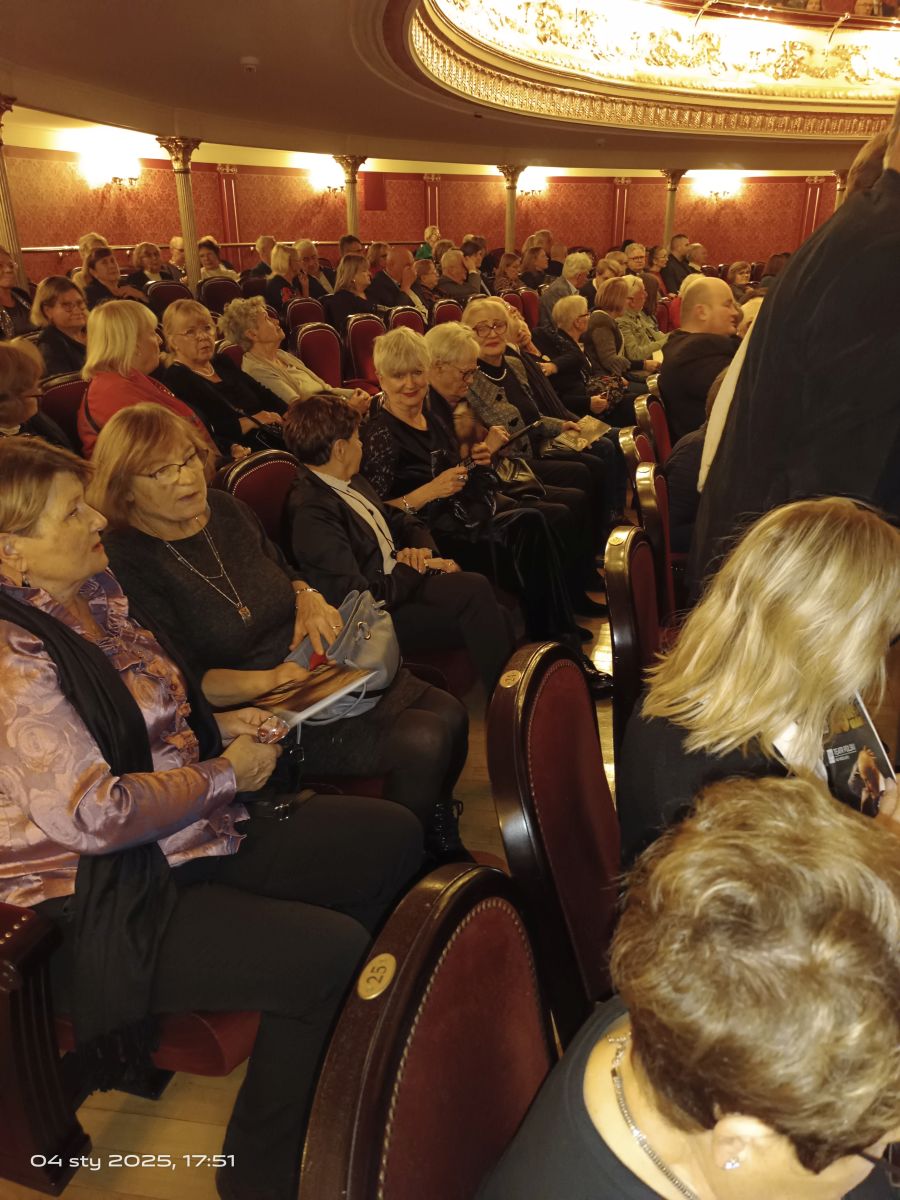 Widzowie na stojąco oklaskiwali wszystkich aktorów, wykonawców oprawy spektaklu i reżyserkę. Po spektaklu pani Urszula Barbara Struś – prezes naszego UTW podziękowała wszystkim za niezwykłe wydarzenie.