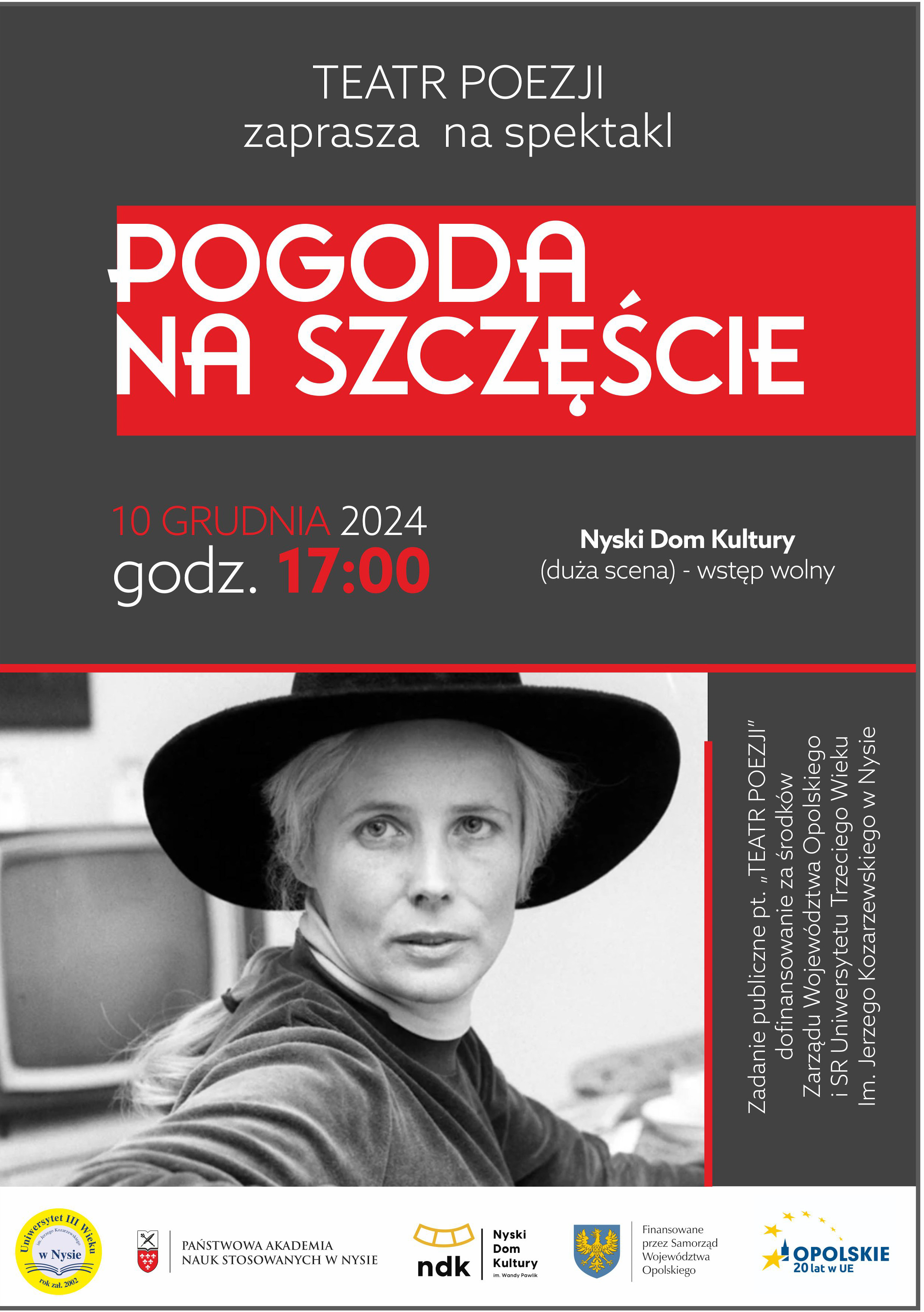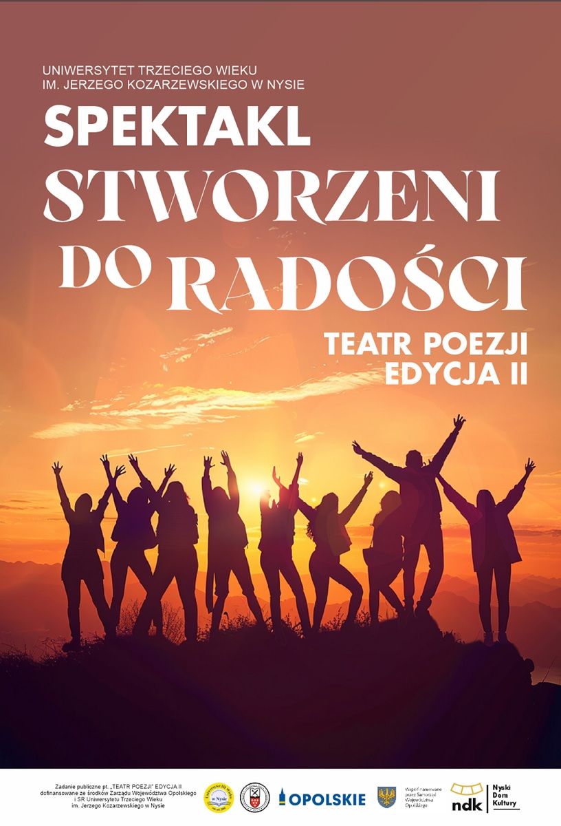 2 grudnia 2025 r. Teatr poezji Uniwersytetu Trzeciego Wieku im. Jerzego Kozarzewskiego w Nysie wystawił spektakl poetycki pt. „Stworzeni do radości”. Po wielu miesiącach pracy, wielu godzinach prób zespół teatralny przedstawił licznie zgromadzonej publiczności efekty wszystkich działań warsztatowych prowadzonych z wielkim zaangażowaniem i pasją przez członków pod kierownictwem Michaliny Danuty Podgórni. Spektakl przybliżył widzom wiersze flamandzkiego poety Philla Bosmansa oraz polskich poetów: Leopolda Staffa, Bolesława Leśmiana, Juliana Tuwima, Tadeusza Śliwiaka, Jonasza Kofty oraz nyskich poetów: Jerzego Kozarzewskiego i Danuty Kobyłeckiej. Głównym przesłaniem spektaklu było zachęcić widzów do spojrzenia na świat, ludzi i zwykłą codzienność w inny sposób. Poszukiwania szczęścia w drobiazgach, zauważenie innych ludzi, zachwytu przyrodą, chwilą… i zwrócenie uwagi na wartości najwyższe: dobro, miłość, przyjaźń, szacunek do siebie nawzajem i ten niewiarygodny cud – jakim jest życie.