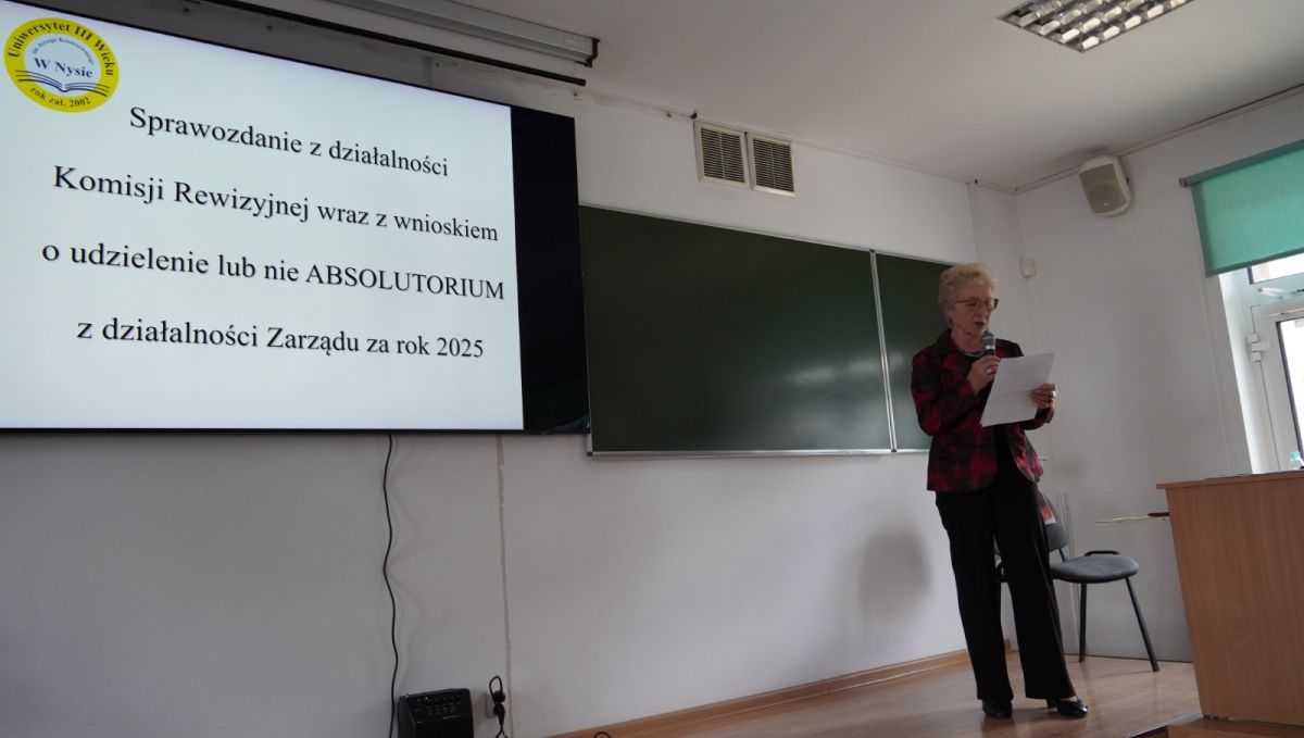 Dnia 8 kwietnia 2026 roku o godzinie 11:10 w sali wykładowej Państwowej Akademii Nauk Stosowanych w Nysie przy ul. Chodowieckiego 4 odbyło się Zwyczajne Sprawozdawcze Zgromadzenie Członków Stowarzyszenia Uniwersytetu Trzeciego Wieku w Nysie. W zebraniu uczestniczyli członkowie stowarzyszenia oraz zaproszony gość – Pełnomocnik Rektora PANS Nysa ds. UTW.