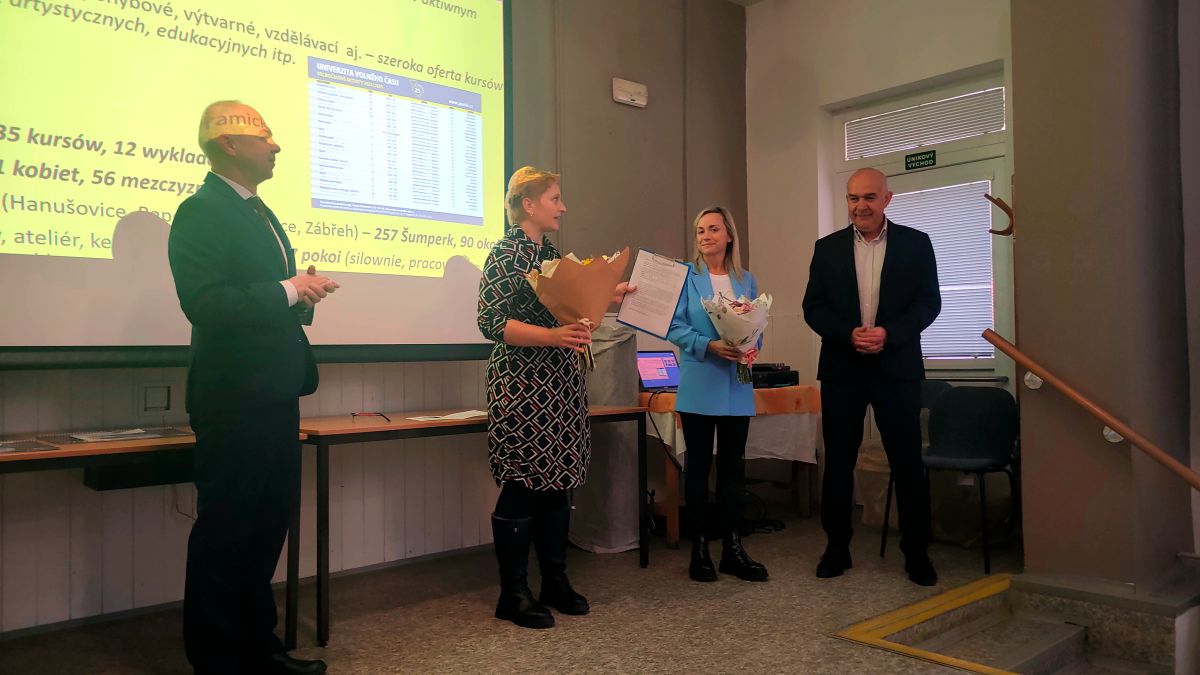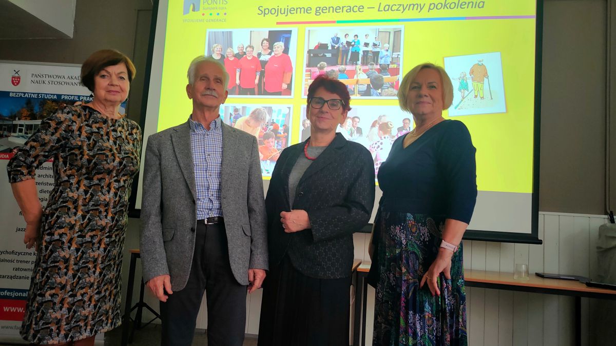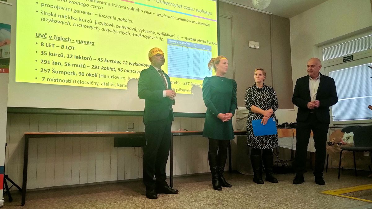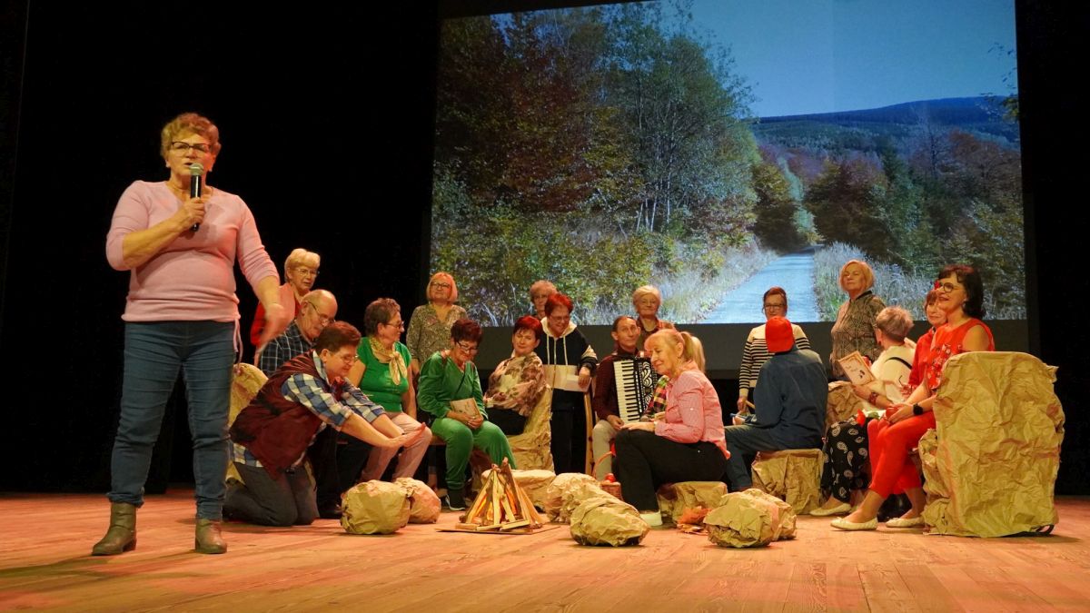 Michalina Danuta Podgórni podziękowała swojemu zespołowi oraz Ewie Morel – za wykonanie scenografii i koordynowanie projektu, panu Ryszardowi Doleckiemu za wykonanie prezentacji fotograficznej, filmowej i muzycznej, pani Alinie Szczerskiej za opracowanie i złożenie projektu do Urzędu Marszałkowskiego w Opolu, dzięki czemu otrzymaliśmy dofinansowanie projektu, pani prezes UTW Urszuli Barbarze Struś za życzliwe wspieranie realizacji zadania, Dyrektorowi Nyskiego Domu Kultury panu Pawłowi Nakoniecznemu za udostępnienie przestrzeni NDK na warsztaty teatralne i spektakl oraz pracownikom NDK – operatorom dźwięku, światła i sceny.